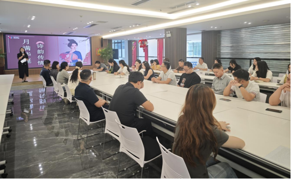 公司领导在致辞中对员工的辛勤付出表示了由衷的感谢,并送上节日的问候与祝愿。活动现场大家共同观看了央视大型纪录片《国家记忆》,并设置了诗词朗诵、中秋猜谜、等多个环节。在“诗词朗诵”环节,员工们踊跃分享中秋佳作,《沁园春·雪》《水调歌头·明月几时有》等经典篇目轮番呈现,赢得阵阵掌声;“中秋猜谜”区挂满了涵盖诗词、历史、民俗的谜语,大家积极参与互相探讨,现场欢声笑语不断。